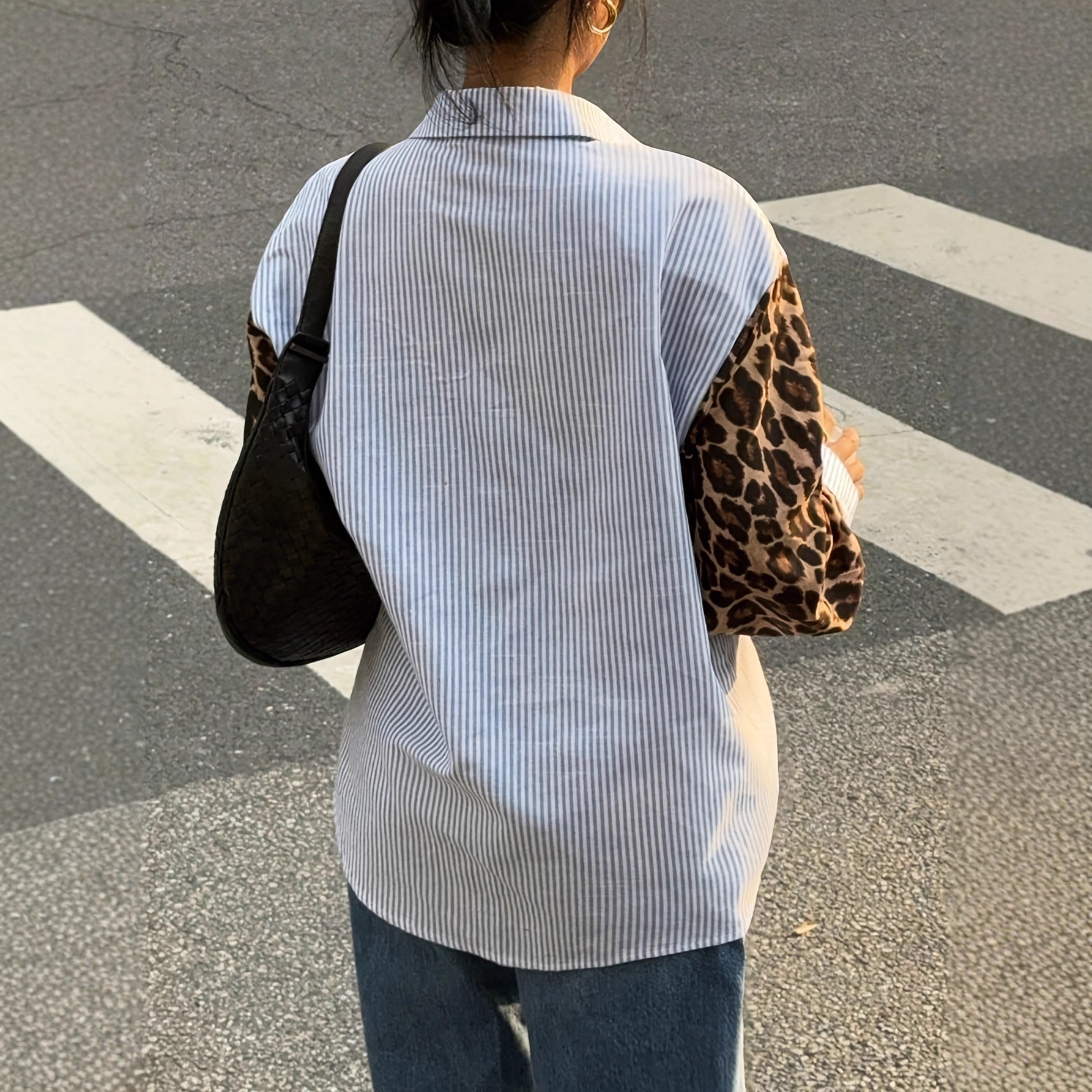 New Relaxed-fit Patchwork Leopard-print Shirt Top